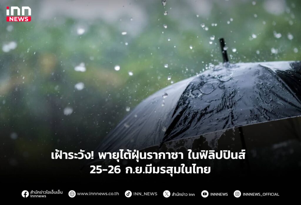 กรมอุตุฯ เผย ไทยตอนบนมีฝนตกหนักบางแห่ง โดยเฉพาะ 5 จังหวัดภาคเหนือและอีสาน เตือน 25-26 ก.ย.พายุใต้ฝุ่นรากาซา ในฟิลิปปินส์ มรสุมปกคลุมไทยมีกำลังแรง