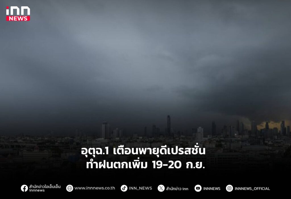 อุตุฉ.1 เตือนพายุดีเปรสชั่น ทำฝนตกเพิ่ม 19-20 ก.ย.