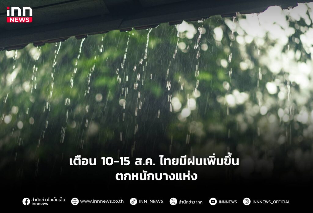 เตือน 10-15 ส.ค. ไทยมีฝนเพิ่มขึ้น ตกหนักบางแห่ง