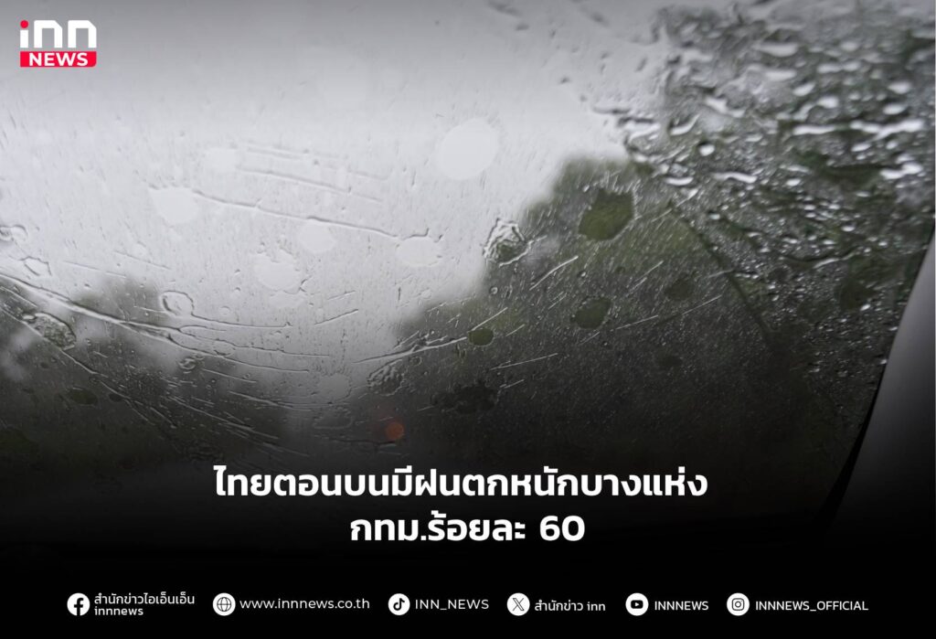 ไทยตอนบนมีฝนตกหนักบางแห่ง กทม.ร้อยละ 60