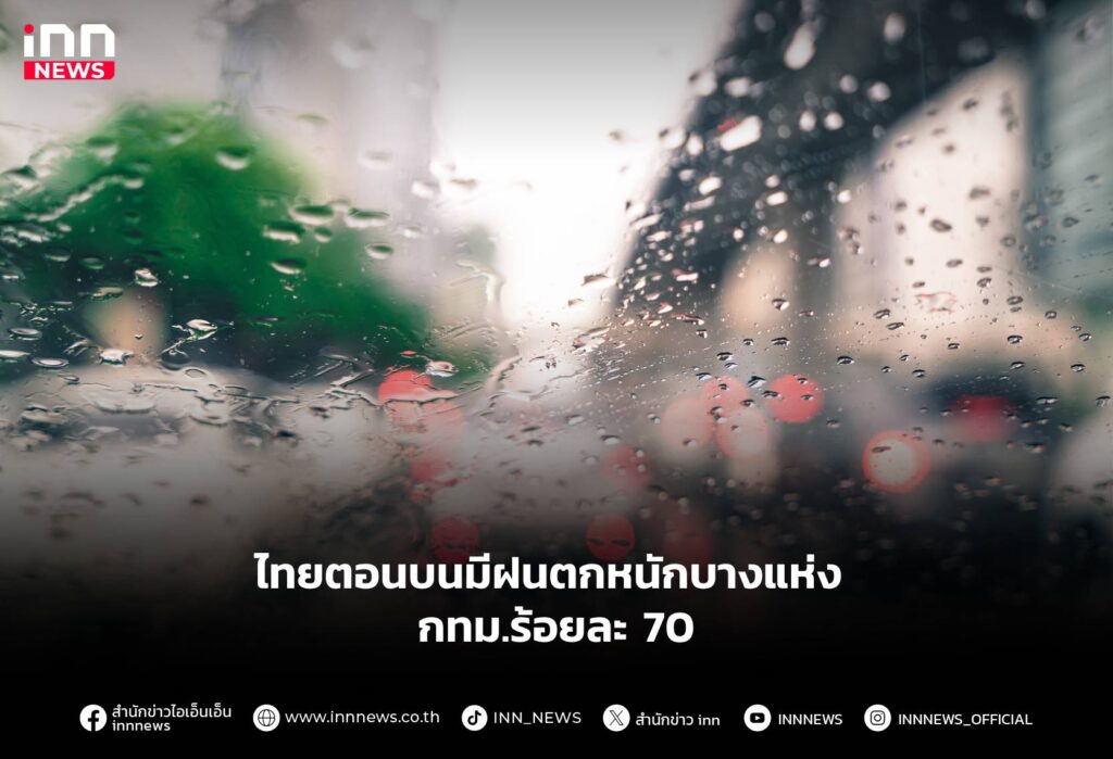 ไทยตอนบนมีฝนตกหนักบางแห่ง กทม.ร้อยละ 70