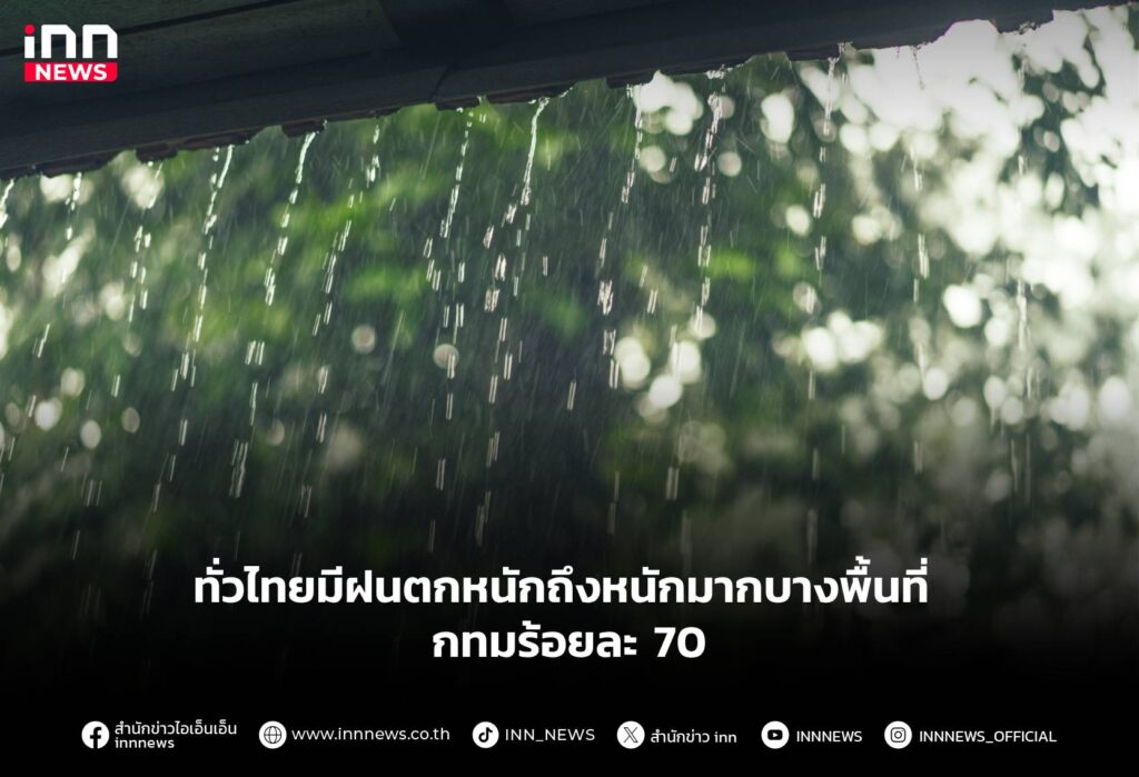 กรมอุตุฯ เผย สภาพอากาศทั่วไทยมีฝนตกหนักถึงหนักมากบางพื้นที่ ระวังน้ำท่วมฉับพลัน กรุงเทพปริมณฑลฝนร้อยละ 70