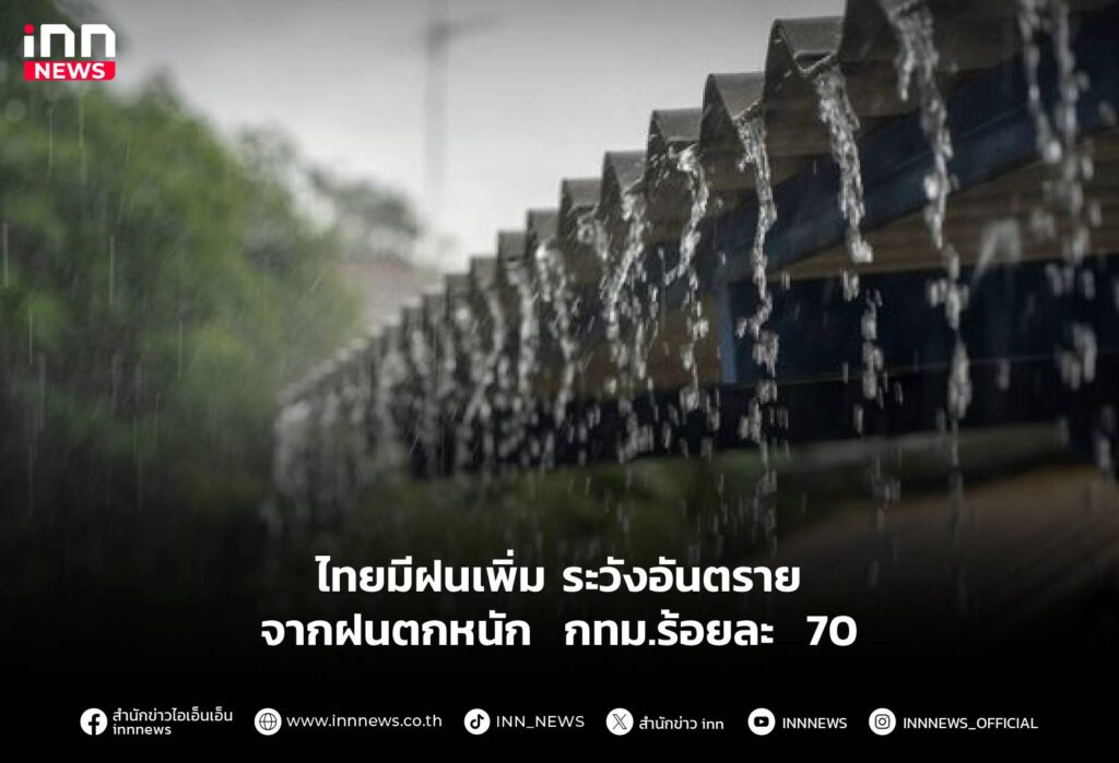 ไทยมีฝนเพิ่มระวังอันตรายจากฝนตกหนัก กทม.ร้อยละ 70