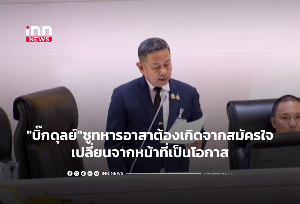 "บิ๊กดุลย์"ยันนโยบายยึดอธิปไตย-ความมั่นคงชาติ ชูทหารอาสาต้องเกิดจากสมัครใจ ลุยปรับวิธีคิดเจากหน้าที่เป็นโอกาส บอกรวมเป็นหนึ่ง จึงชนะ