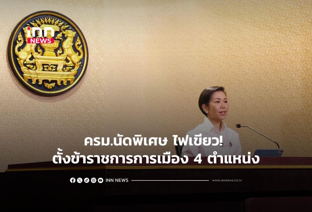 ครม.นัดพิเศษ ไฟเขียว! ตั้งข้าราชการการเมือง 4 ตำแหน่ง