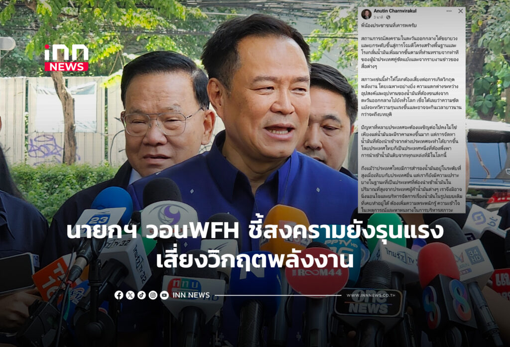 นายกฯ วอนWFHชี้สงครามตะวันออกกลางรุนแรงเสี่ยงวิฤตพลังงาน