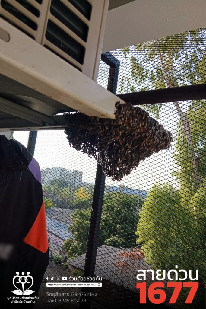 ช่วยทำลายรังผึ้งที่ระเบียงห้อง ถนนราษฎร์พัฒนา
