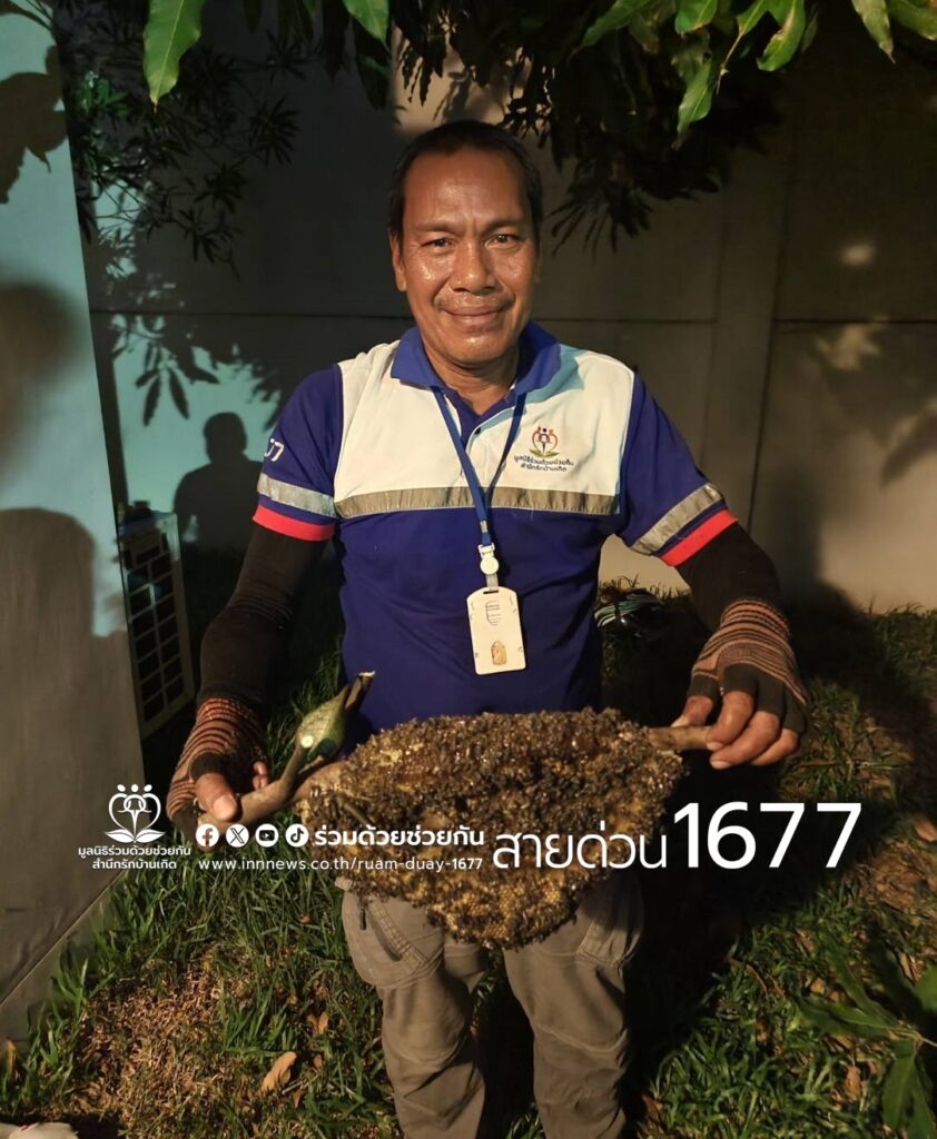 ปล่อยไว้อันตราย! อาสาร่วมด้วยเข้าช่วยกำจัดรังผึ้ง ถ.หทัยราษฎร์