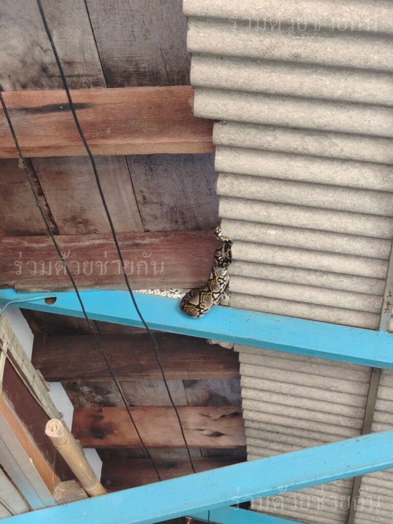 อาสาฯจับงูเหลือมใต้หลังคาบ้าน ถนนสุวินทวงศ์