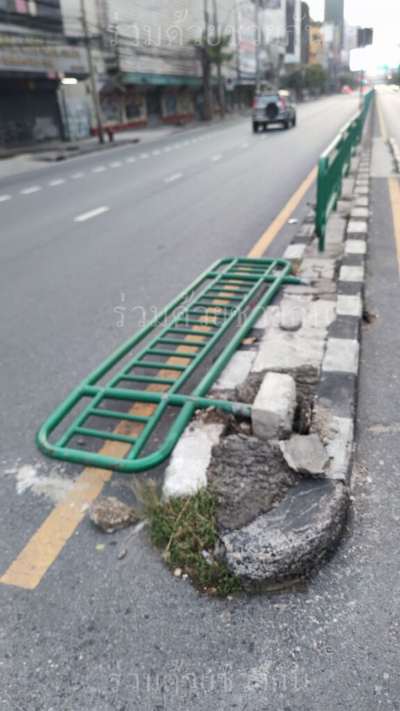 เตือนระวัง! แผงเหล็กเกาะกลางล้ม ถนนเพชรบุรี