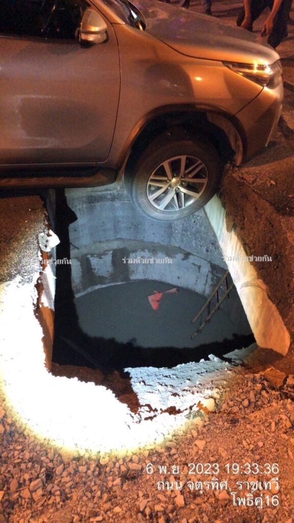 รถยนต์ตกหลุมลึก ถนนจตุรทิศ