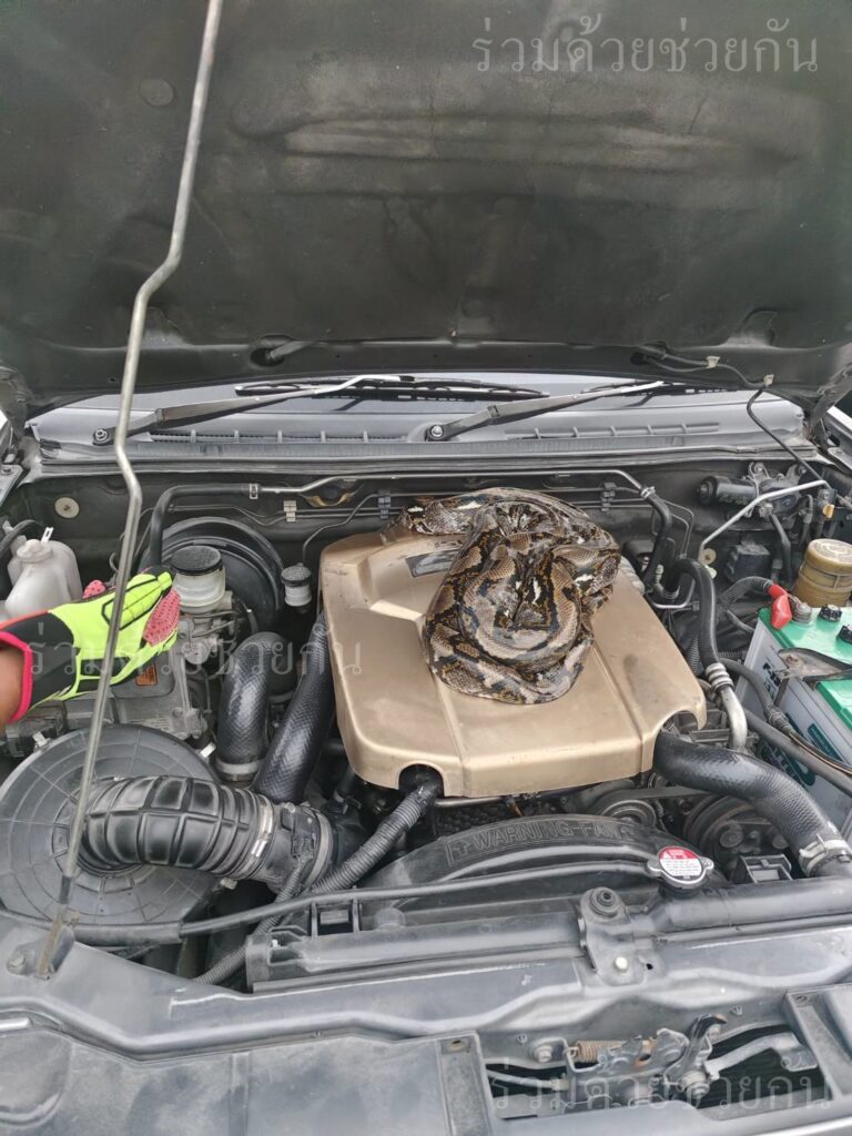งูเหลือมเข้าห้องเครื่องรถกระบะ ซอยโพธิ์แก้ว 4 แยก 6
