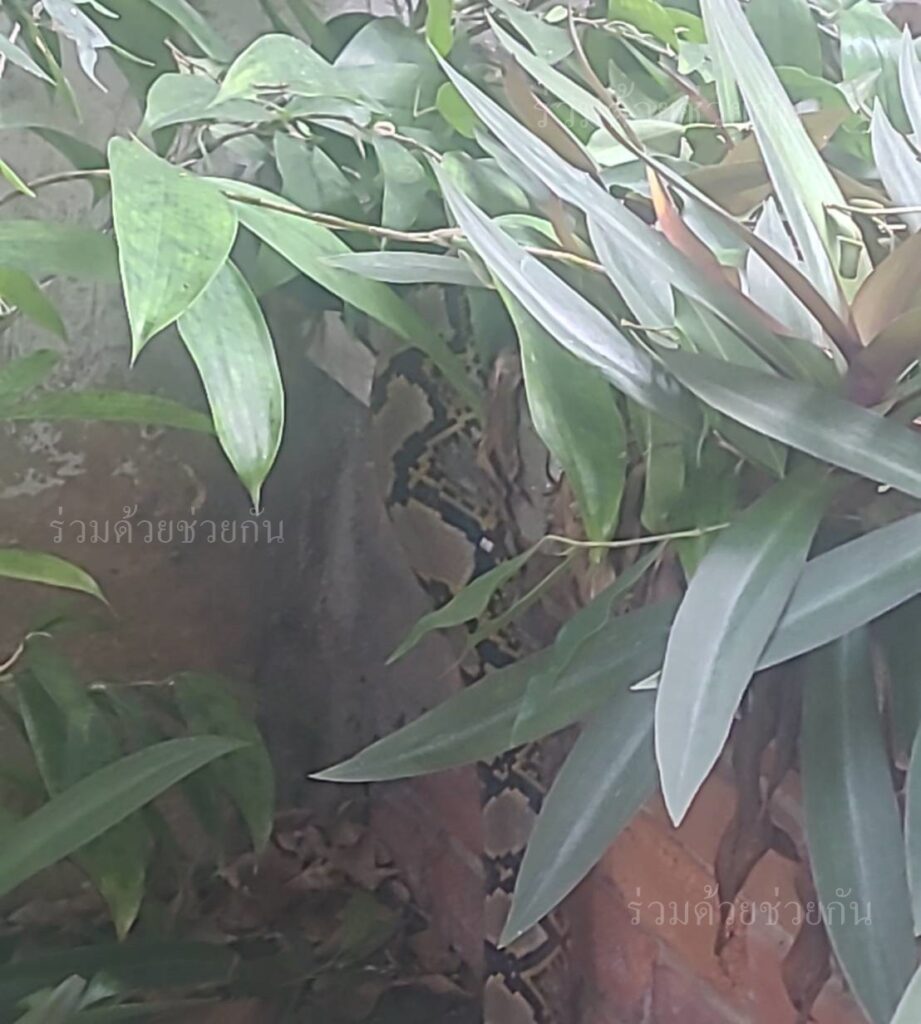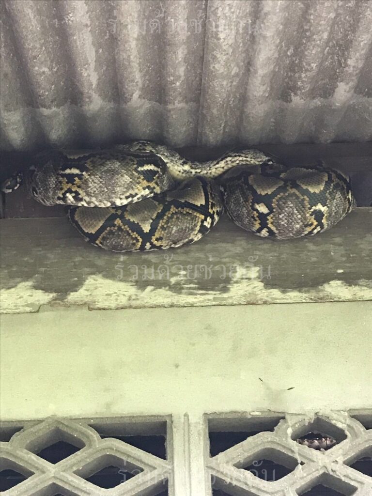 งูเหลือมบนคานใต้หลังคาบ้าน ถนนจอมทองบูรณะ