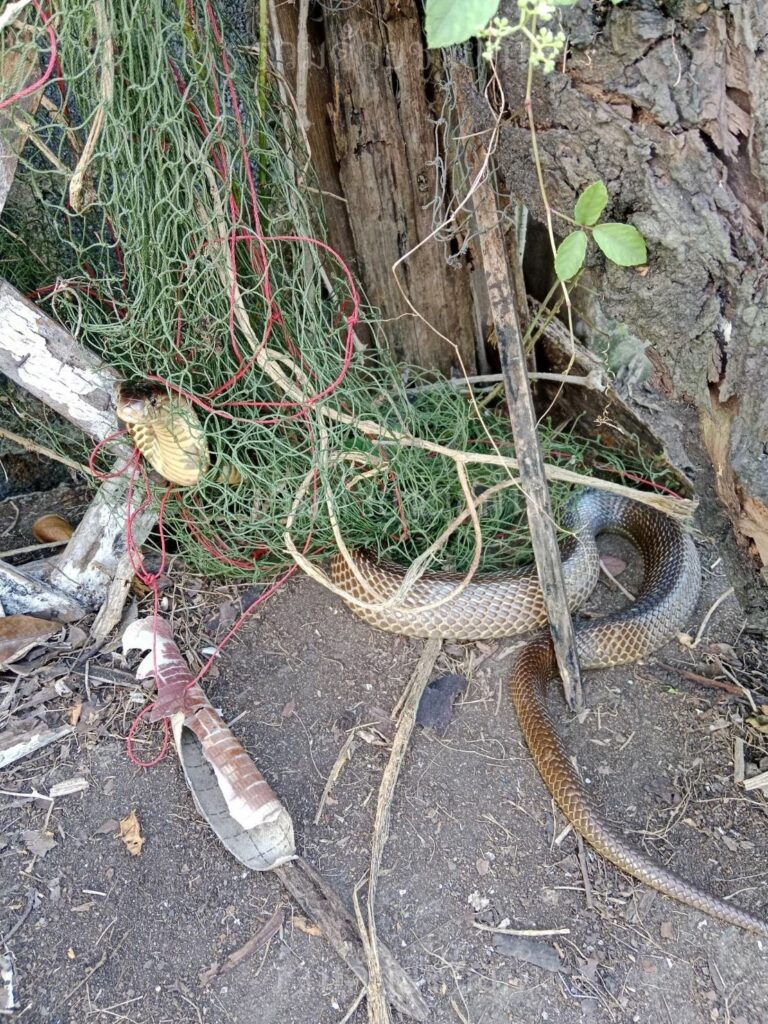 อาสาฯ ช่วยจับงูเห่าติดตาข่าย ถนนนิมิตใหม่