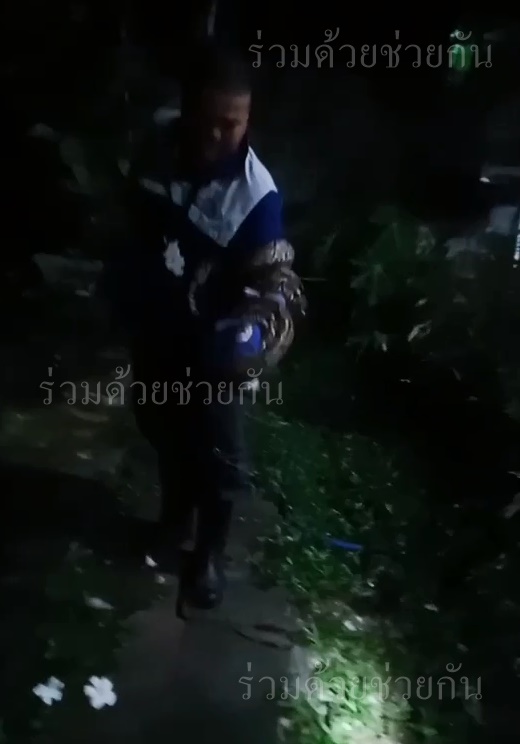 อาสาช่วยจับงูเหลือมเข้าบ้านพัก ซอยคู้บอน 36