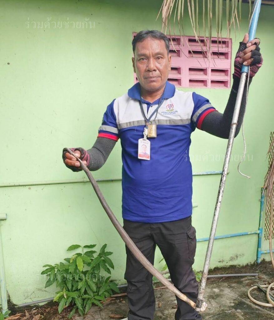 ประชาชนขอความช่วยเหลือให้ช่วยจับงูเห่า ถนนพระยาสุเรนทร์ ซอย 1-3 อาสาร่วมด้วยเร่งช่วยจับนำไปปล่อยป่าห่างไกลบ้านเรือนให้เป็นเรียบร้อย