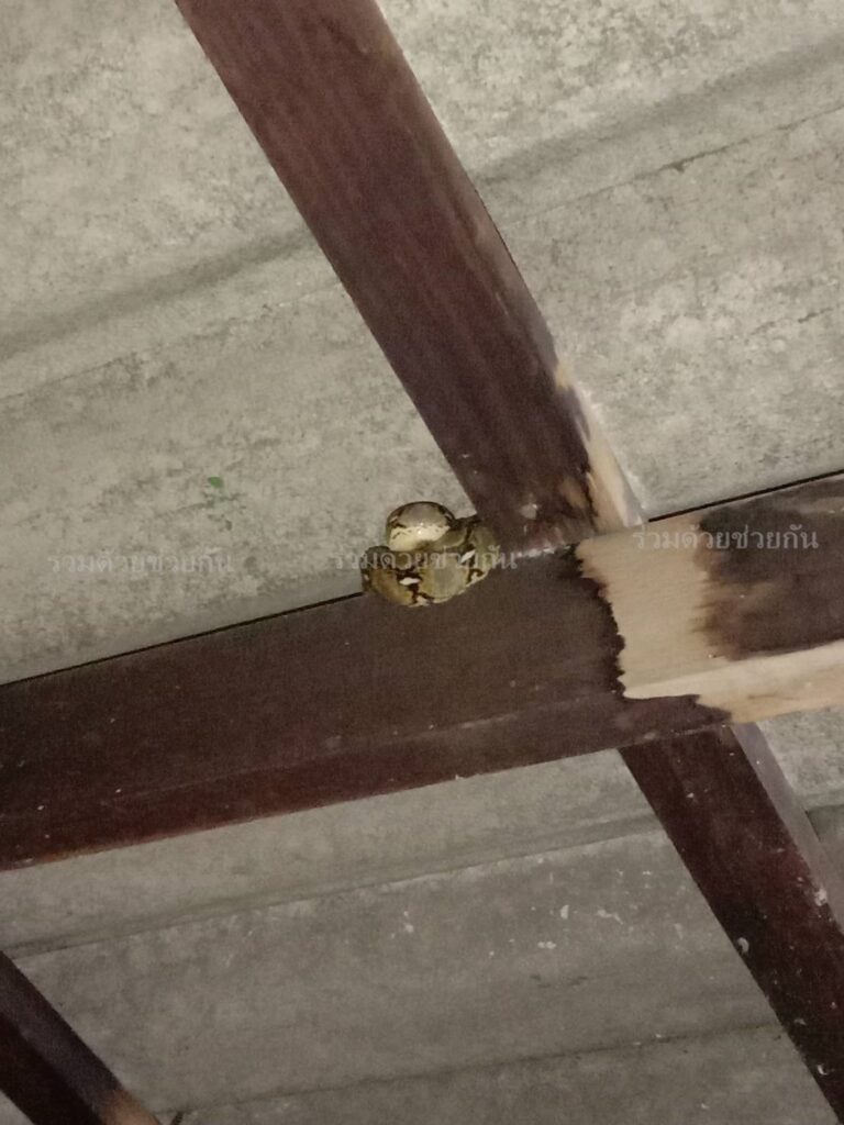 งูเหลือมซุกใต้หลังคาบ้าน ซอยรามอินทรา 127
