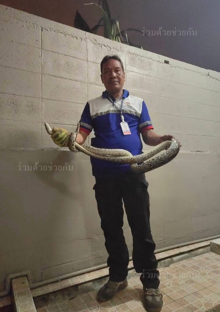 ประชาชนขอความช่วยเหลือให้ช่วยจับงูเหลือม ถนนคู้บอน ซอย 13 อาสาร่วมด้วยเร่งช่วยจับนำไปปล่อยป่าให้เป็นที่เรียบร้อย