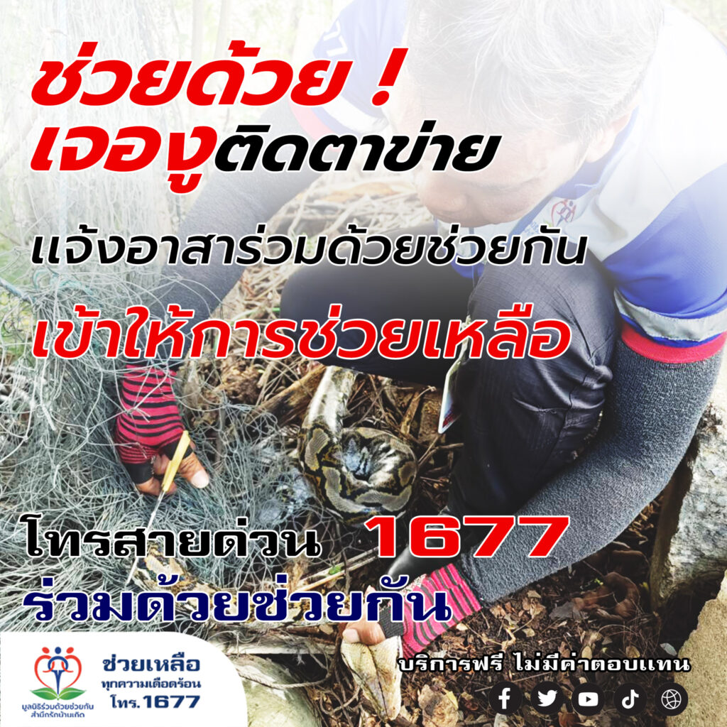 ประชาชนขอความช่วยเหลือจับงูเหลือมขนาดใหญ่ติดตาข่าย ซอยนวมินทร์ 74 อาสาร่วมด้วยเข้าช่วยเหลือจับออกพร้อมนำไปปล่อยป่า