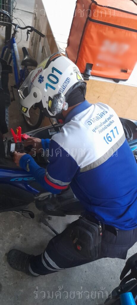 อาสาฯช่วยรถจยย.แบตเตอรี่หมด ถนนนวลจันทร์