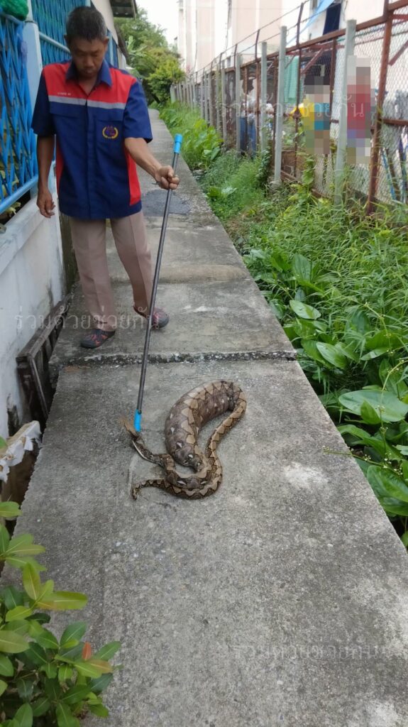 อาสาฯช่วยจับงูเหลือมใต้หลังคาบ้าน ถนนรามอินทรา