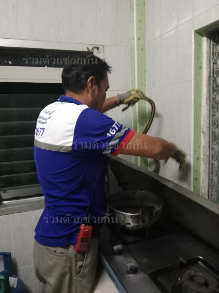 อาสาฯ ช่วยจับงูภายในห้องครัว ซอยพระยาสุเรนทร์ 34