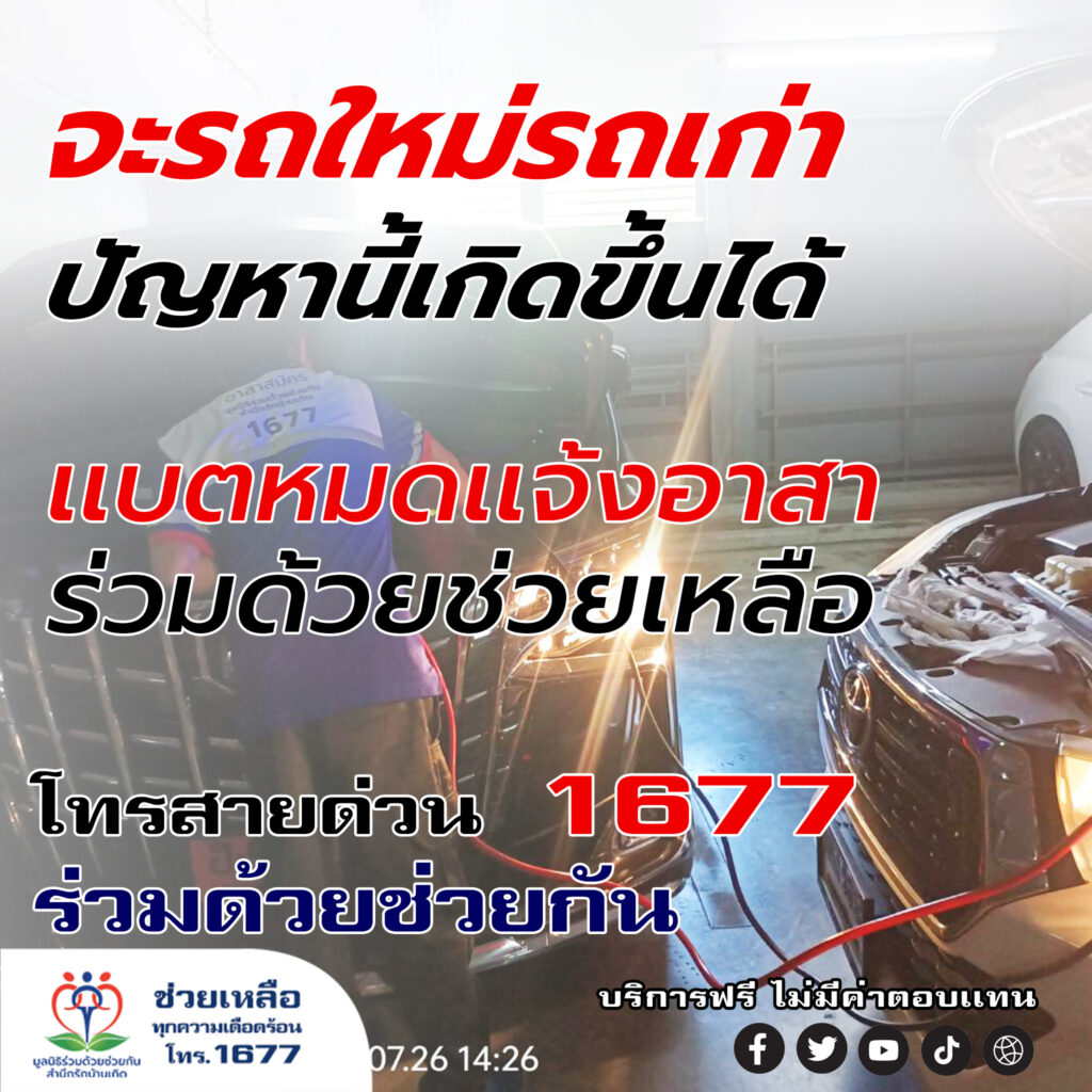 รถใหม่รถเก่า ปัญหาแบตหมดเกิดขึ้นได้ แจ้งอาสาร่วมด้วยช่วยเหลือ