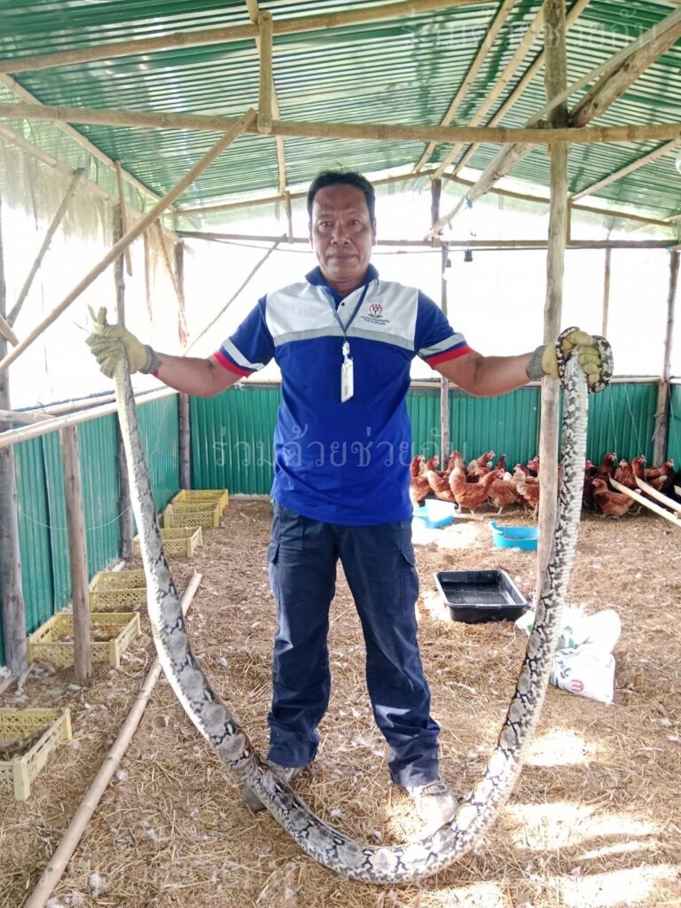 อาสาฯจับงูเหลือมภายในเล้าไก่ ซอยหลังซาฟารีเวิลด์
