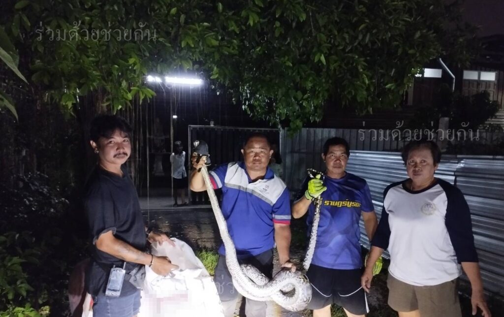เจ้าของบ้านผวา! งูเหลือมขนาดใหญ่โผล่หน้าบ้าน ถ.สุขสวัสดิ์ ซอย 26