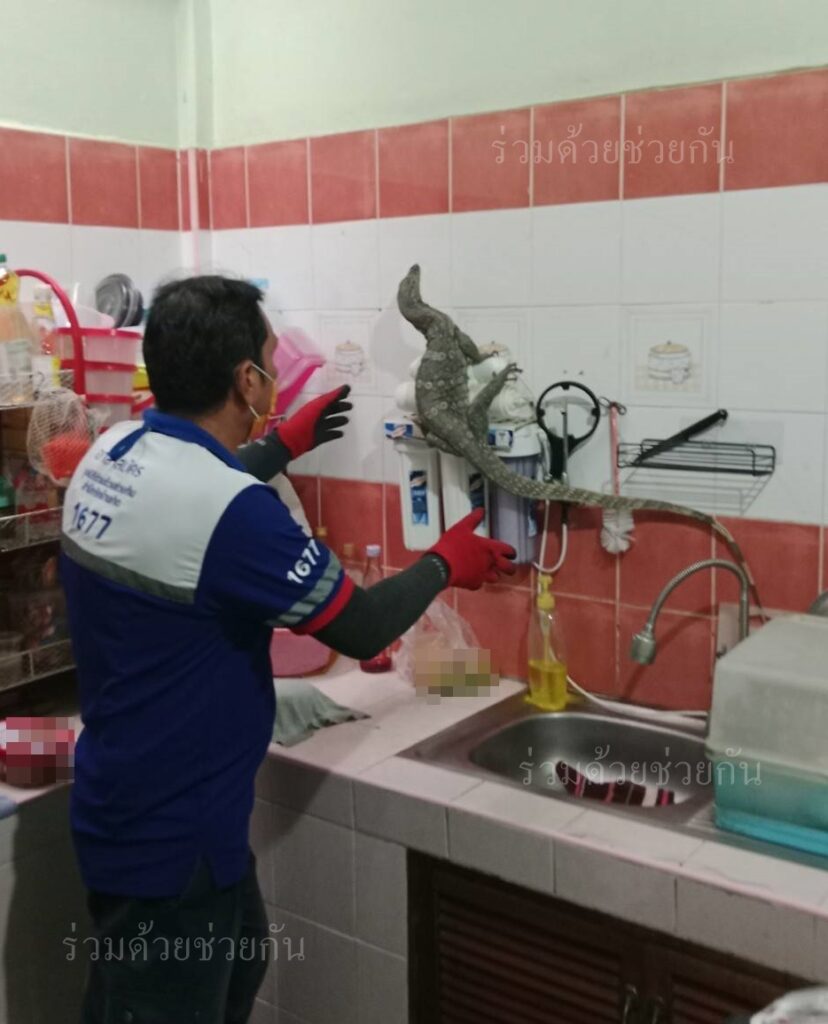 เจ้าของบ้านผวา! ตัวเงินตัวทองโผล่ในครัว ถ.คู้บอน ซอย 27