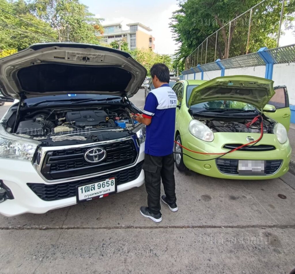 ประชาชนขอความช่วยเหลือรถแบตหมด จอดอยู่ถนนสุขุมวิท อาสาร่วมด้วยช่วยกันเข้าช่วยเหลือพ่วงแบตเตอรี่รถให้เป็นที่เรียบร้อย
