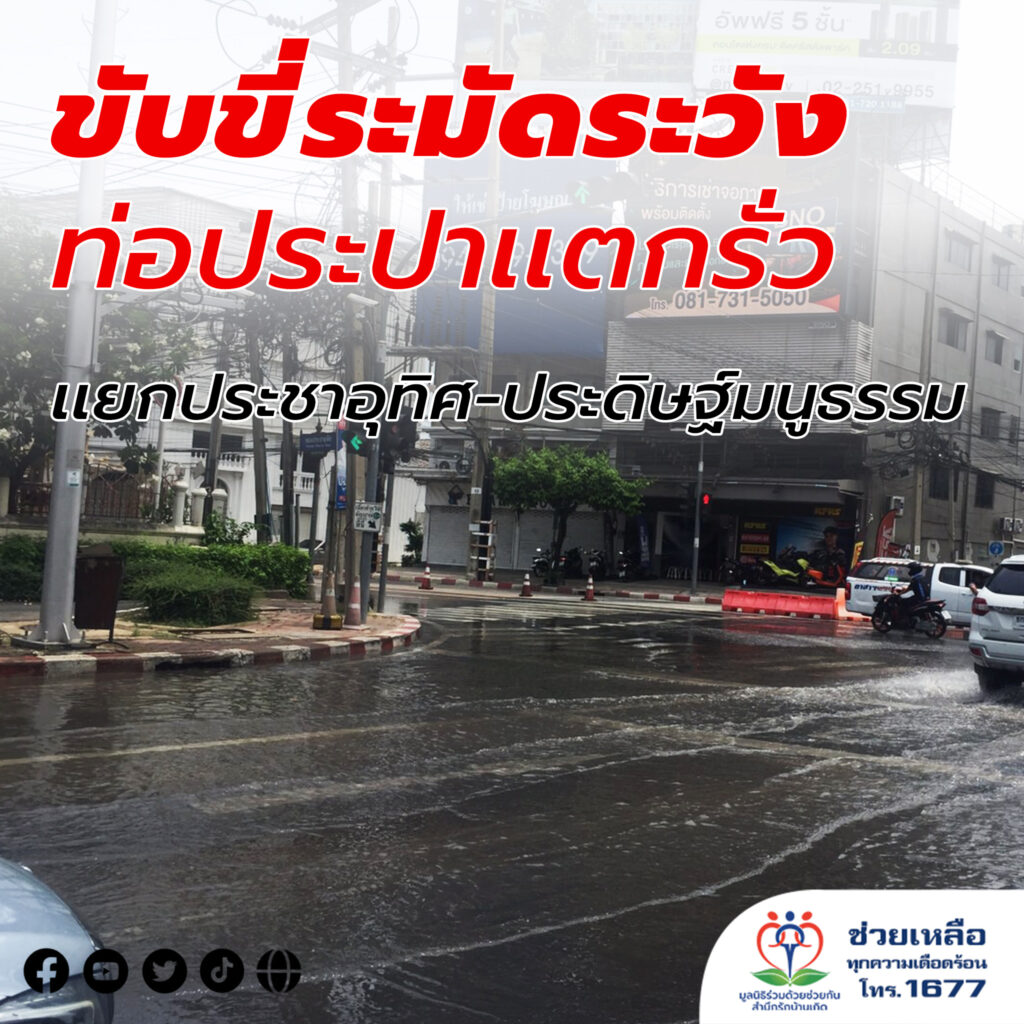 เตือนระวัง!! ท่อประปาแตกรั่ว ถนนประดิษฐ์มนูธรรม