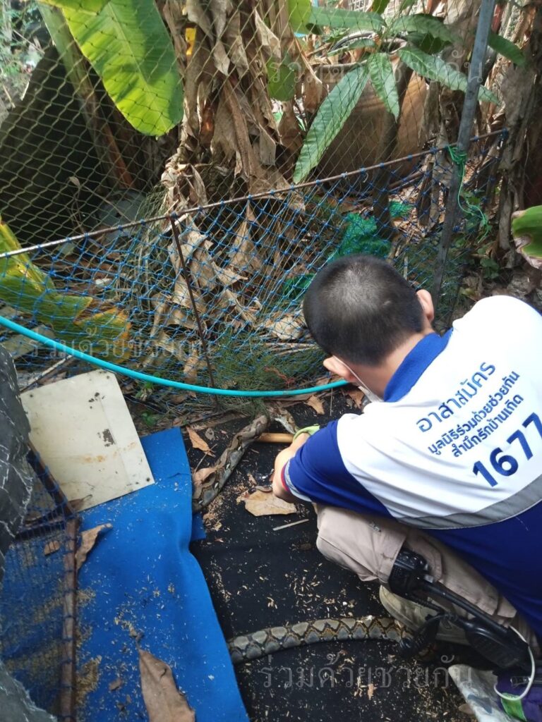 ประชาชนขอความช่วยเหลือให้ช่วยจับงู จะกินไก่ในเล้า ซอยพิบูลสงคราม 11 จ.นนทบุรี อาสาร่วมด้วยได้เข้าช่วยเหลือจับไปปล่อยป่าเป็นที่เรียบร้อย