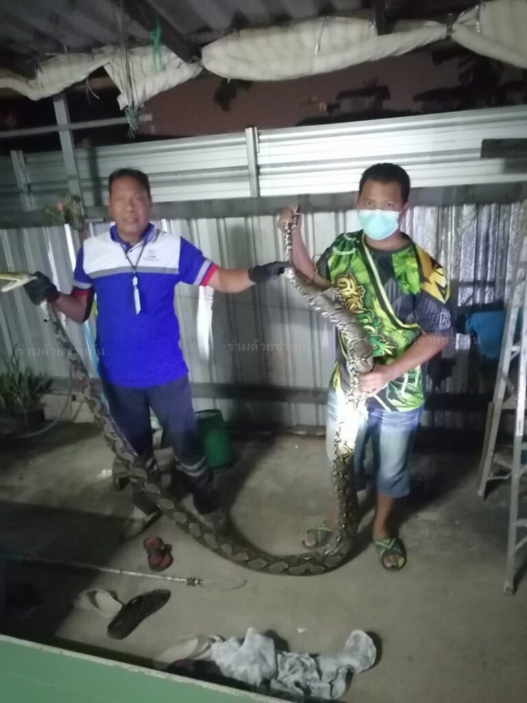 ตกใจ! งูเหลือมซุกใต้หลังคา ซอยคู้บอน 19