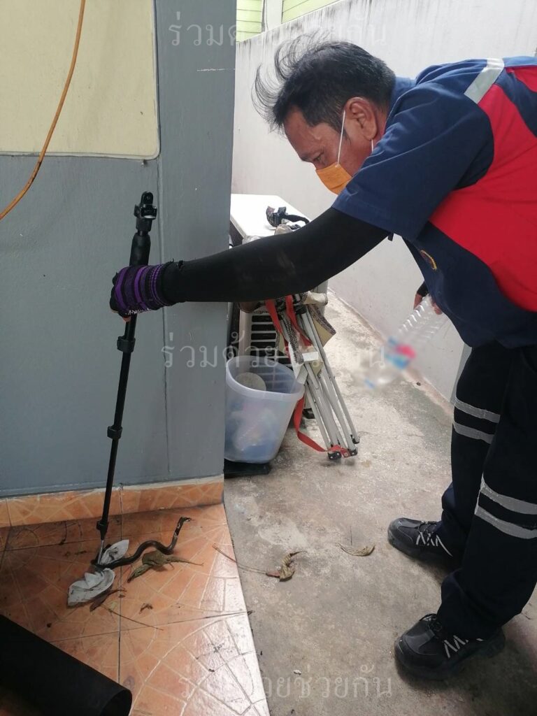 อาสาฯจับลูกงูเห่าหลังตู้ร้องเท้า ถ.คู้บอน