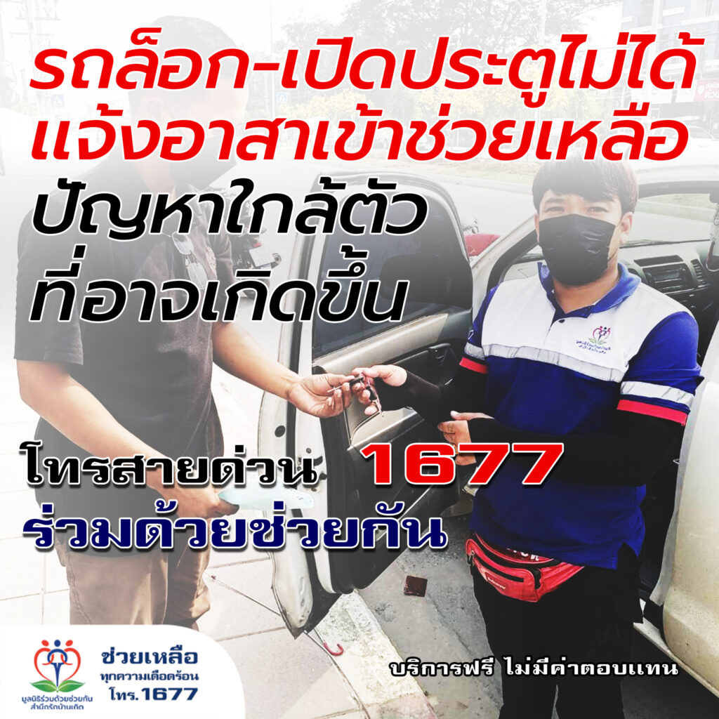 ลืมกุญแจในรถ รถล็อก เปิดประตูไม่ได้ โทร.1677 ประสานอาสาเข้าช่วยเหลือ