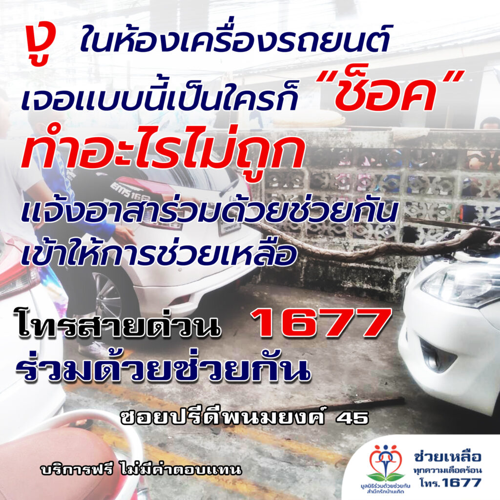 งูเหลือมบุกห้องเครื่องรถเก๋ง ซอยปรีดีพนมยงค์ 45