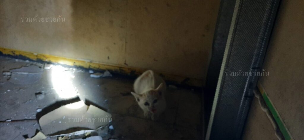 แมวตกจากหลังคาเข้าไปติดในเสาข้างร้านค้า ถ.สวนสยาม ซอย 12 อาสาร่วมด้วยเร่งช่วยเหลือ