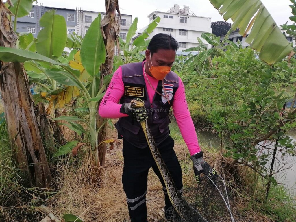อาสาฯจับงูเหลือมบนคานห้องเก็บของ จ.ปทุมธานี