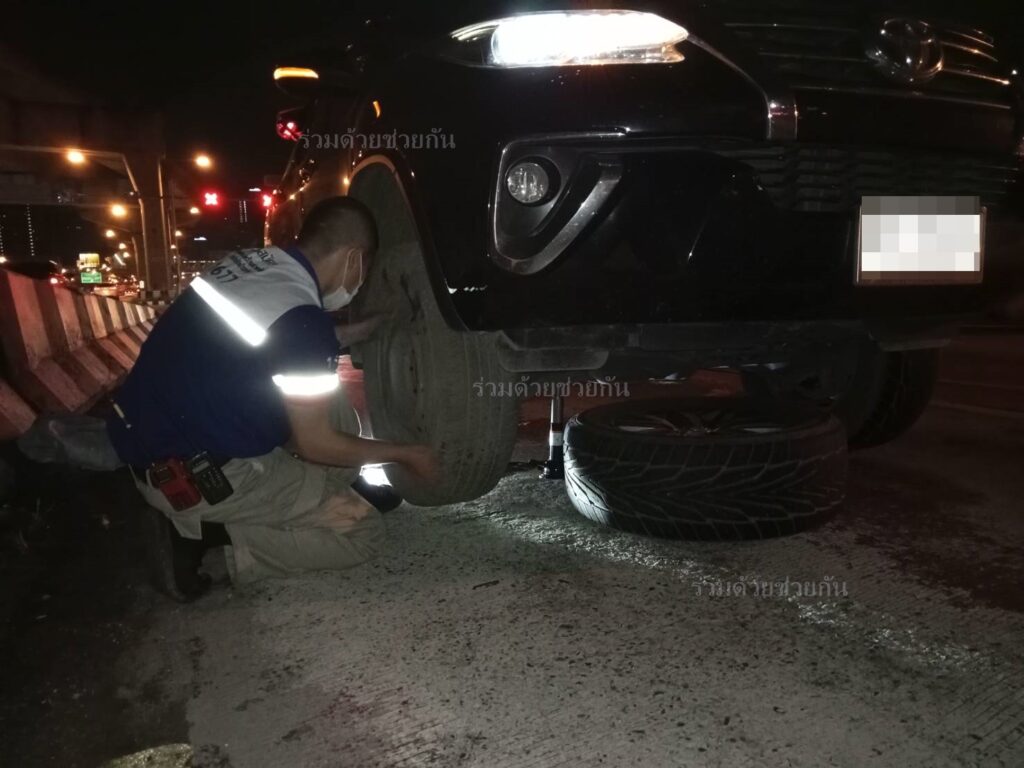 อาสาร่วมด้วยฯ ช่วยรถยางแตก ถนนรัตนาธิเบศร์