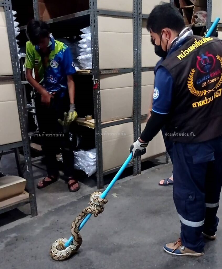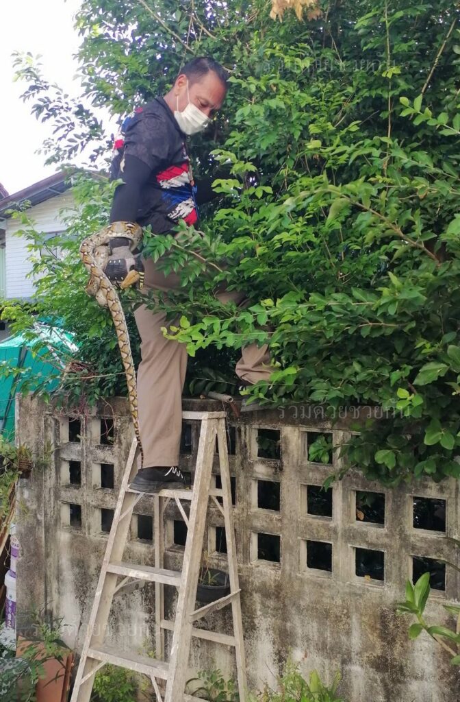 งูเหลือมเลื้อยซุกขื่อใต้หลังคา อาสาช่วยจับปล่อยป […]