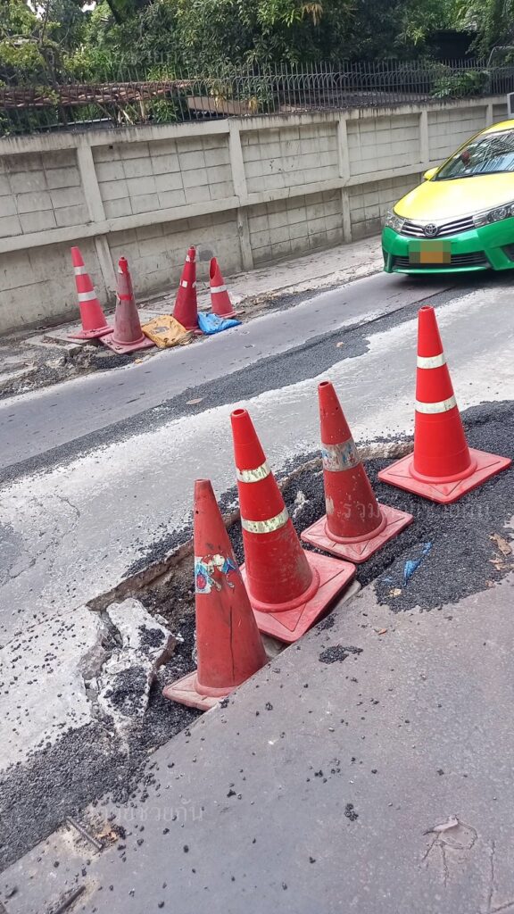 เลี่ยงและระวัง! ถนนชำรุดทรุดตัวเป็นหลุมขนาดใหญ่ ถ.เพชรบุรี ซอย 38/1