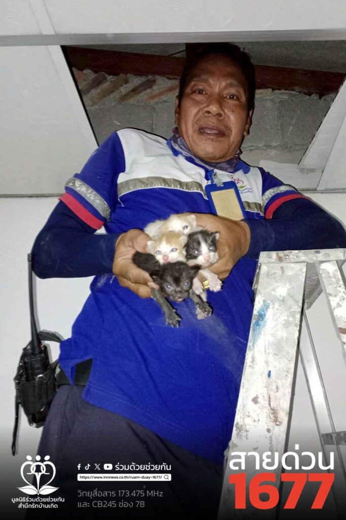 ช่วยลูกแมว5ตัวติดฝ้าเพดานบ้าน