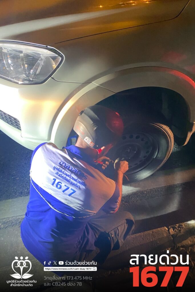 รถล้อยางรั่ว โทร.1677 ร่วมด้วยช่วยกัน พร้อมประสานช่วยเหลือ