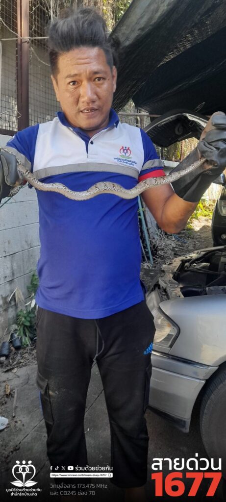 กลัวงู! งูเหลือมอยู่ในรถ ซอยนวลจันทร์ 9 อาสาร่วมด้วยเร่งช่วยเหลือ