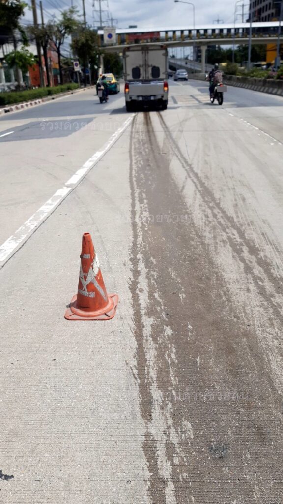 เตือนระวัง!! คราบน้ำมันรั่วไหล ถนนพระราม 3