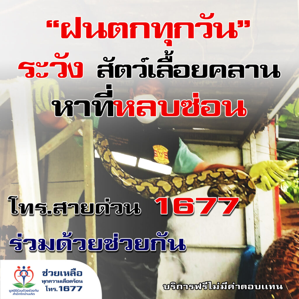 ฝนตกทุกวัน ระวัง! สัตว์เลื้อยคลานหาที่หลบซ่อน พบเห็น โทร.1677