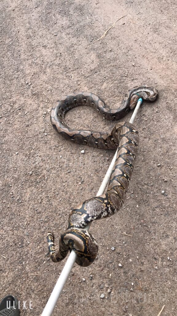 งูเหลือมขดตัวอยู่ใต้หลังคา ถ.สวนสยาม ซอย 22 อาสาร่วมด้วยเร่งช่วยจับ