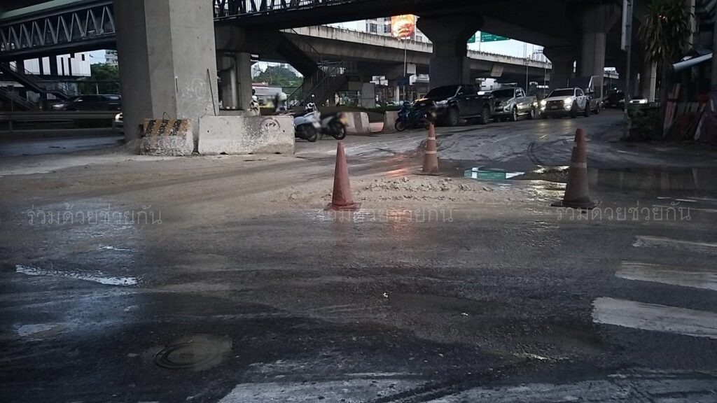 เตือนระวัง! คราบปูนและเศษดินตกหล่น ถ.พระราม 9