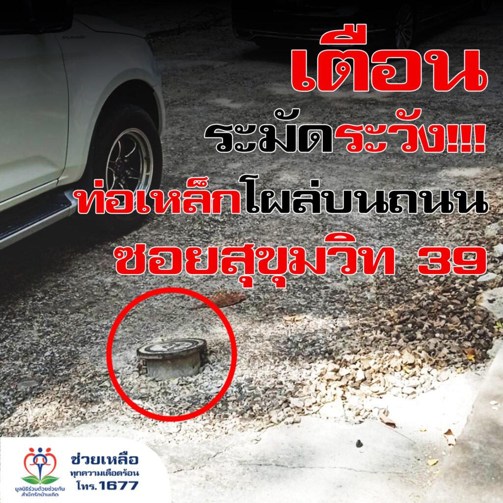 เตือนระวัง!! ท่อเหล็กโผล่บนถนน ซอยสุขุมวิท 39